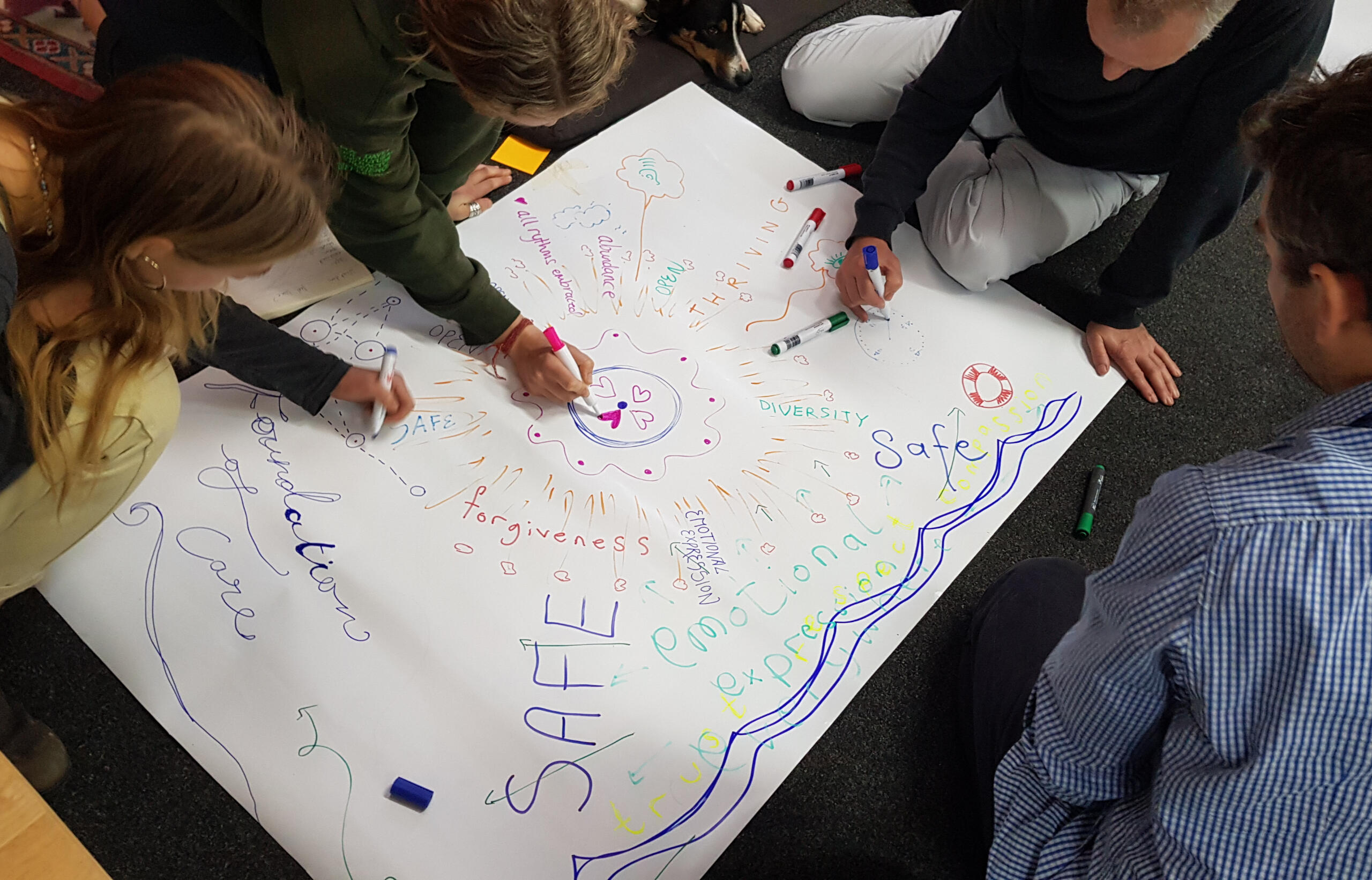 Our Compassionate Co-Inquiry process uses theatre games and storytelling to help people relearn how to have conversations with those who think differently.